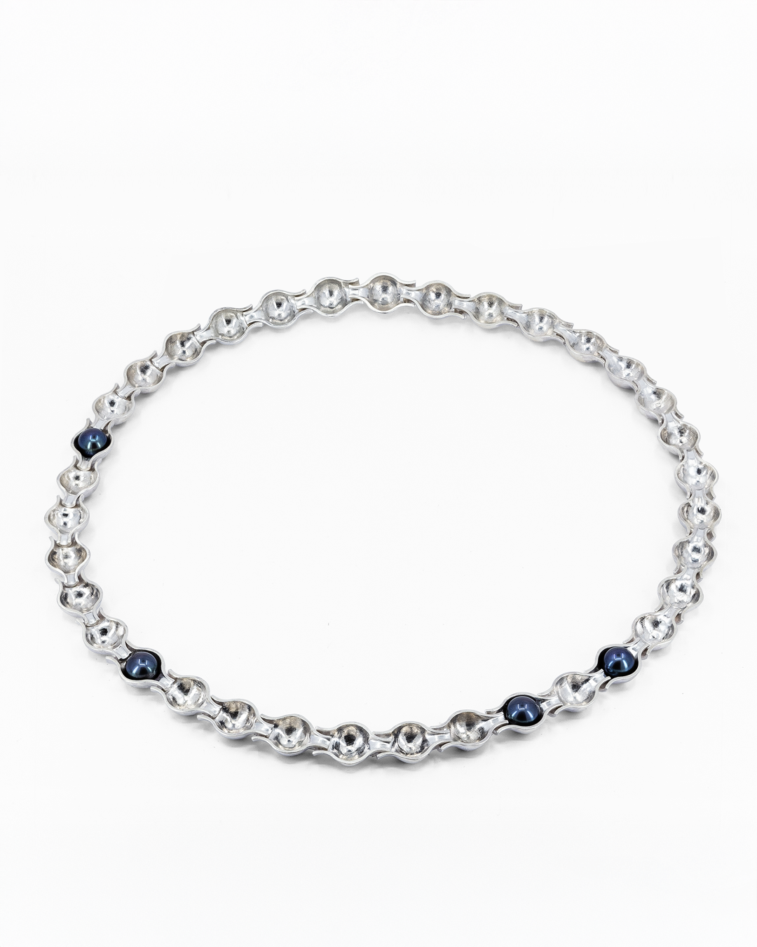 Playfully guiding the way are a series of precious metal, sculptural characters by London-based design duo, Studiomama. These characterful forms march upwards through the SPACE, encouraging visitors step by step toward the top flight. At the summit, Studiomama presents a new jewellery series created especially for this exhibition. Each piece is presented within a modular display system designed by Shoreditch-based multidisciplinary studio, Brown Office.