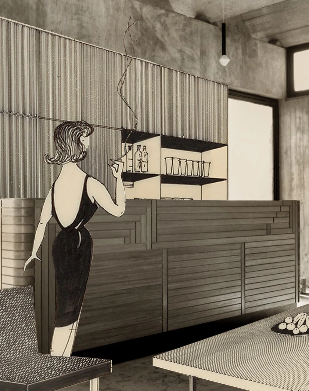 At the centre of the newly configured space is the cocktail bar, originally designed by Tamar de Shalit in 1964–66 for a private members club AND reimagined for the Festival. Tamart patrons are invited to perch on the new Highgate High Barstools which are making their debut in September. The bar places guests right at the heart of the actioN - The Highgate barstools aren’t just seating, they’re a front-row invitation to the full cocktail experience.